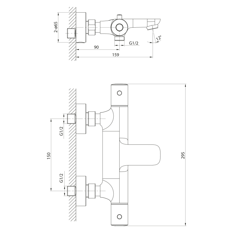KIMURA nástenná vaňová termostatická batéria, chróm KU210 51607