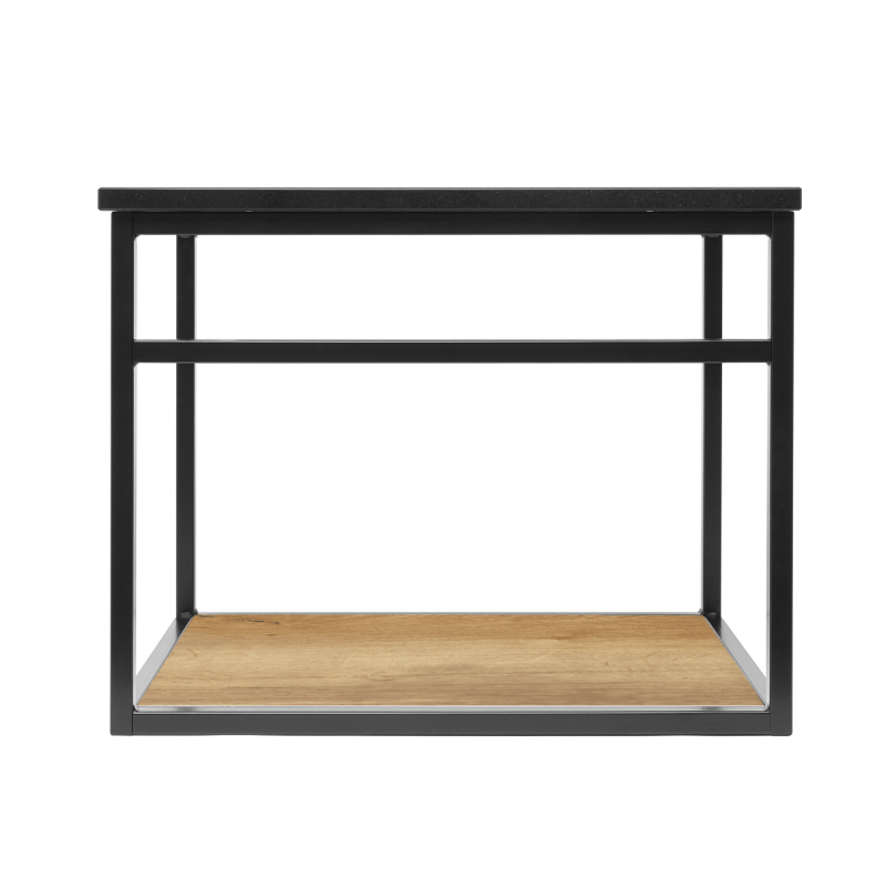 Konštrukcia s krycou doskou z umelého kameňa v čiernej farbe s matným povrchom o rozmere 59x45x45 cm. Materiál oceľ.