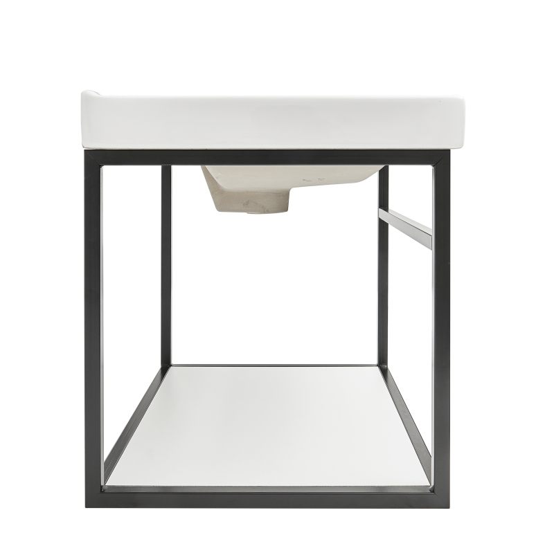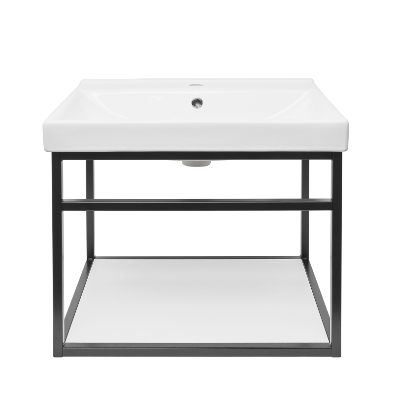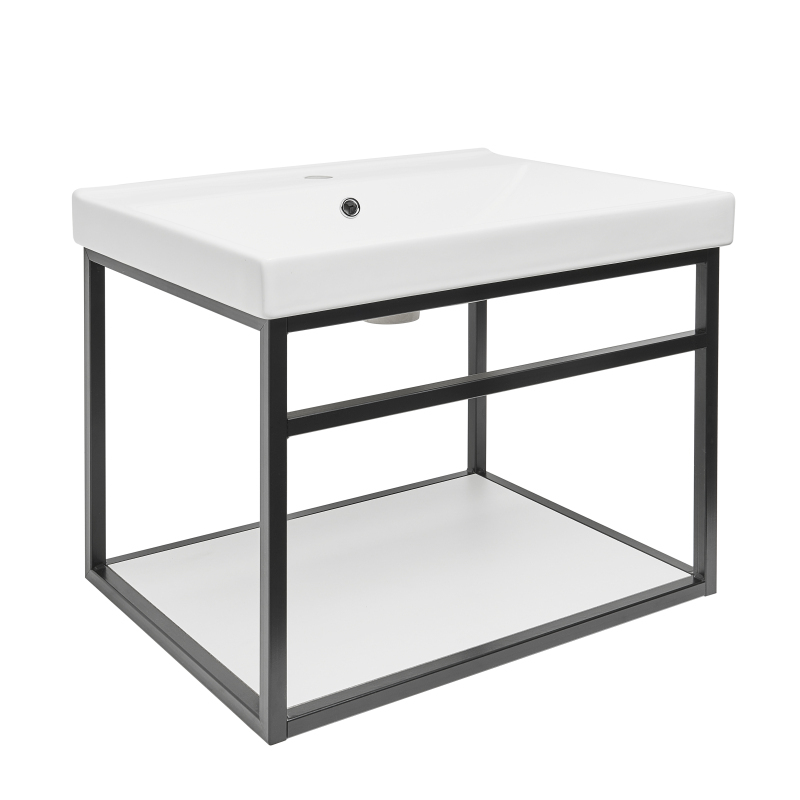 Závesná kúpeľňová skrinka s keramickým umývadlom v čiernej farbe s matným povrchom o rozmere 59x45x45 cm. Materiál oceľ.