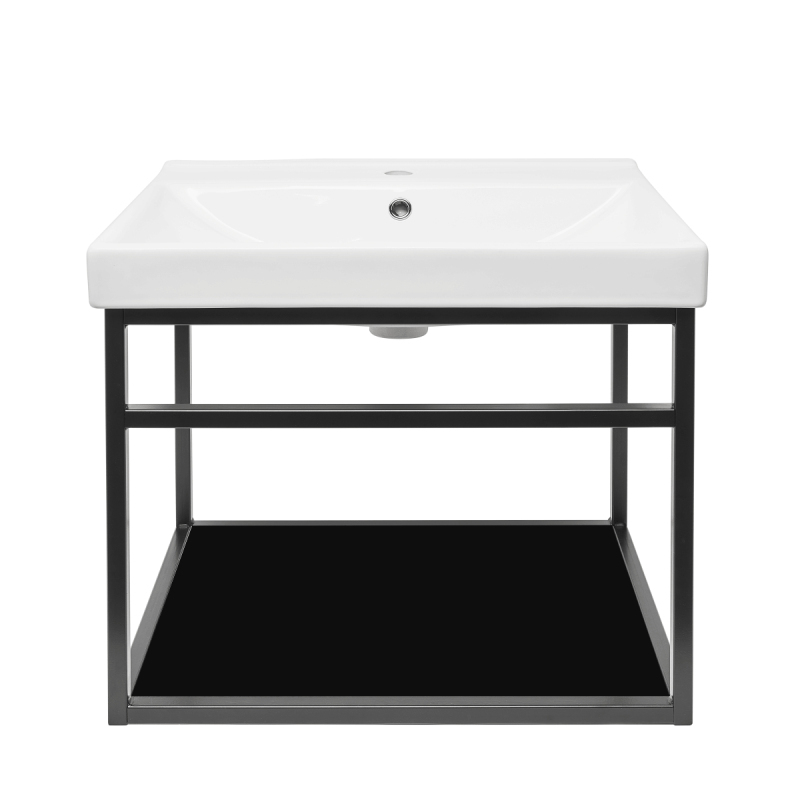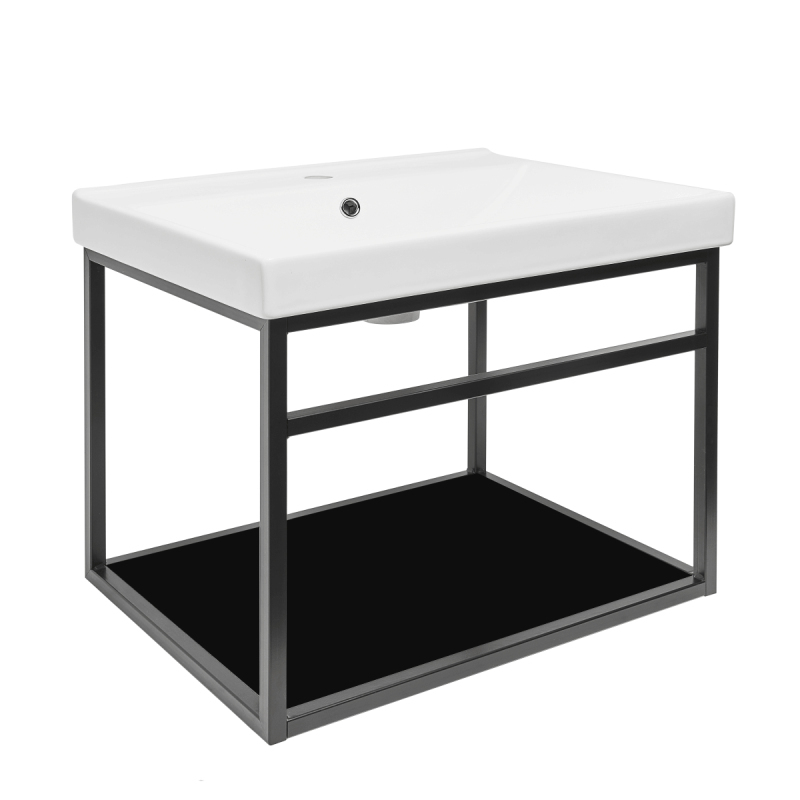 Konštrukcia s keramickým umývadlom v čiernej farbe s matným povrchom o rozmere 59x45x45 cm. Materiál oceľ.