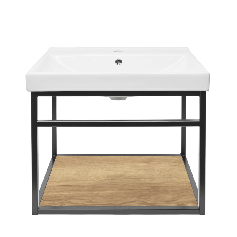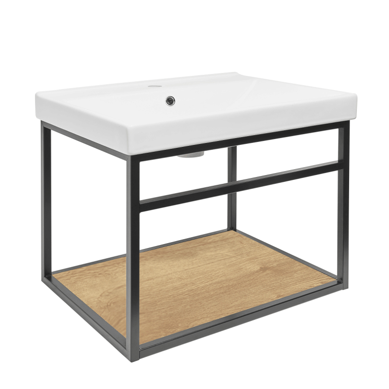 Konštrukcia s keramickým umývadlom v čiernej farbe s matným povrchom o rozmere 59x45x45 cm. Materiál oceľ.