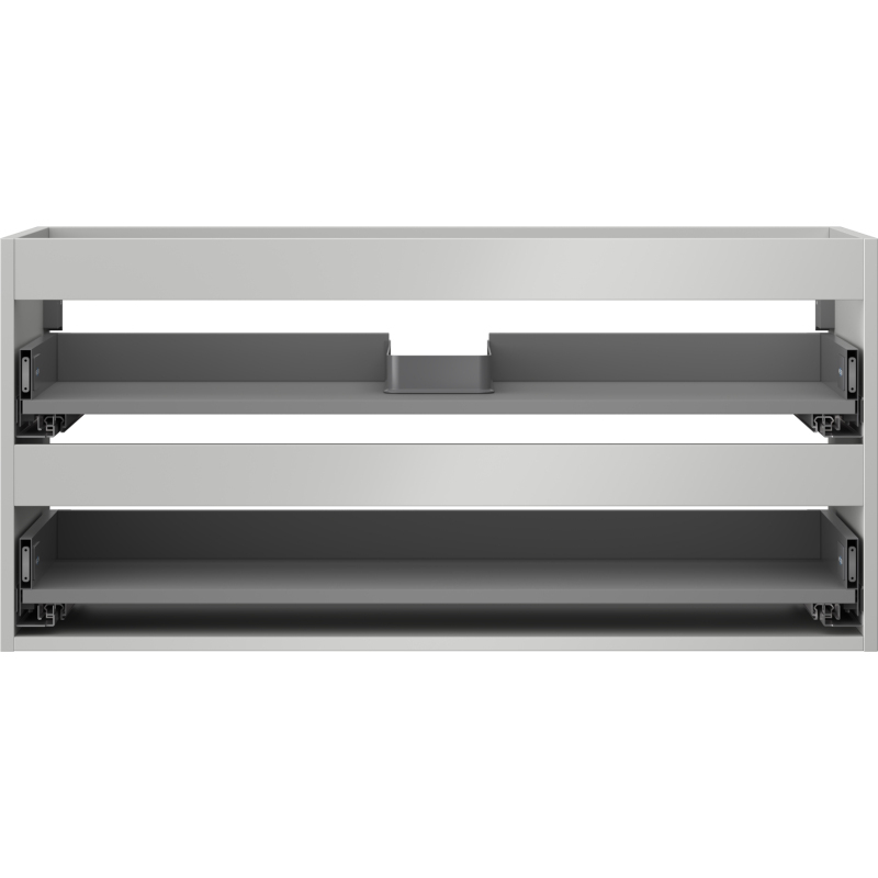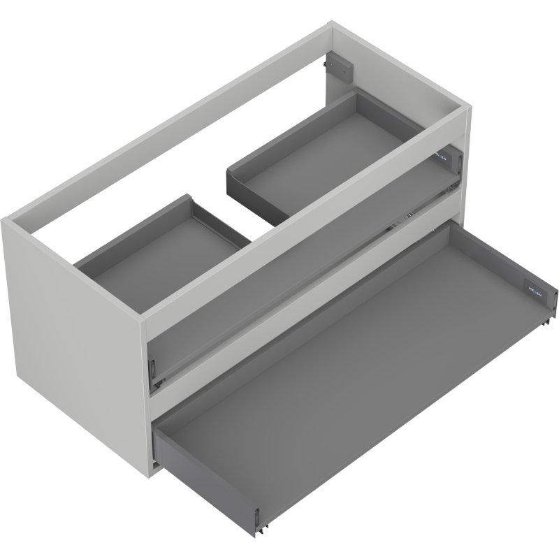 Špecifikácia produktu: Šírka: 100 cm Hĺbka: 44,2 cm Výška: 47 cm Farba: Matne šedá Typ: Závesné Materiál: Lakovaná doska Počet zásuviek: 2 Vodítka s funkciou tlmeného dovierania Plný výsuv pre ľahký prístup k obsahu zásuvky Povrch odolný voči UV žiareniu Kombinovateľný s d