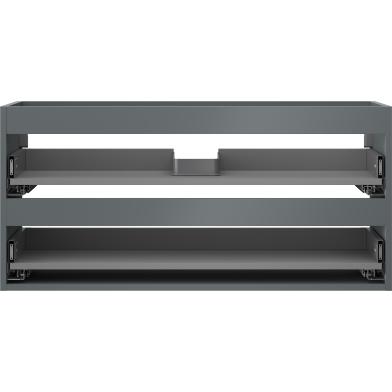 Špecifikácia produktu: Šírka: 100 cm Hĺbka: 44,2 cm Výška: 47 cm Farba: Matný grafit Typ: Závesné Materiál: Lakovaná doska Počet zásuviek: 2 Vodítka s funkciou tlmeného dovierania Plný výsuv pre ľahký prístup k obsahu zásuvky Povrch odolný voči UV žiareniu Kombinovateľný