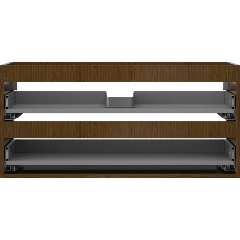 Špecifikácia produktu: Šírka: 100 cm Hĺbka: 44,2 cm Výška: 47 cm Farba: Orech Typ: Závesné Materiál: Kartón + PVC fólia Počet zásuviek: 2 Vodítka s funkciou tlmeného dovierania Plný výsuv pre ľahký prístup k obsahu zásuvky Povrch odolný voči UV žiareniu Kombinovateľný