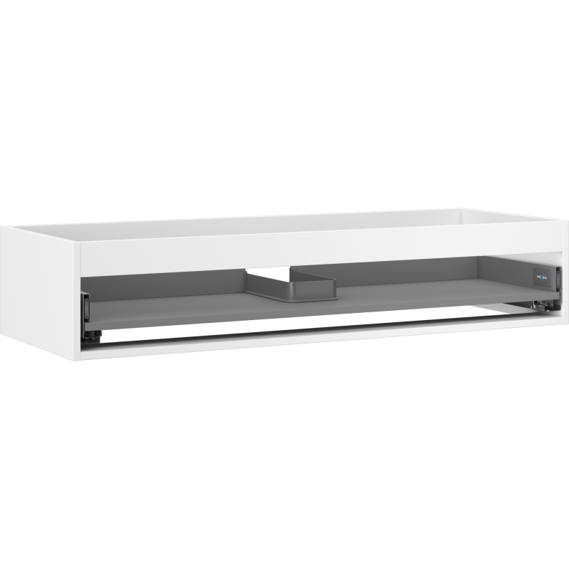 Špecifikácia produktu: Šírka: 120 cm Hĺbka: 44,2 cm Výška: 23,5 cm Farba: Matná biela Typ: Závesné Materiál: Lakovaná doska Počet zásuviek: 1 Vodítka s funkciou tlmeného dovierania Plný výsuv pre ľahký prístup k obsahu zásuvky Povrch odolný voči UV žiareniu Kombinovateľ