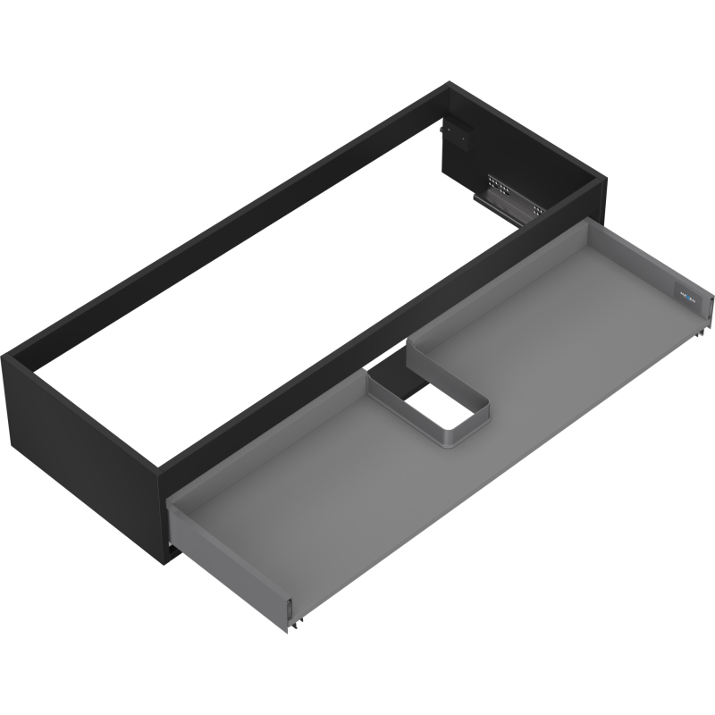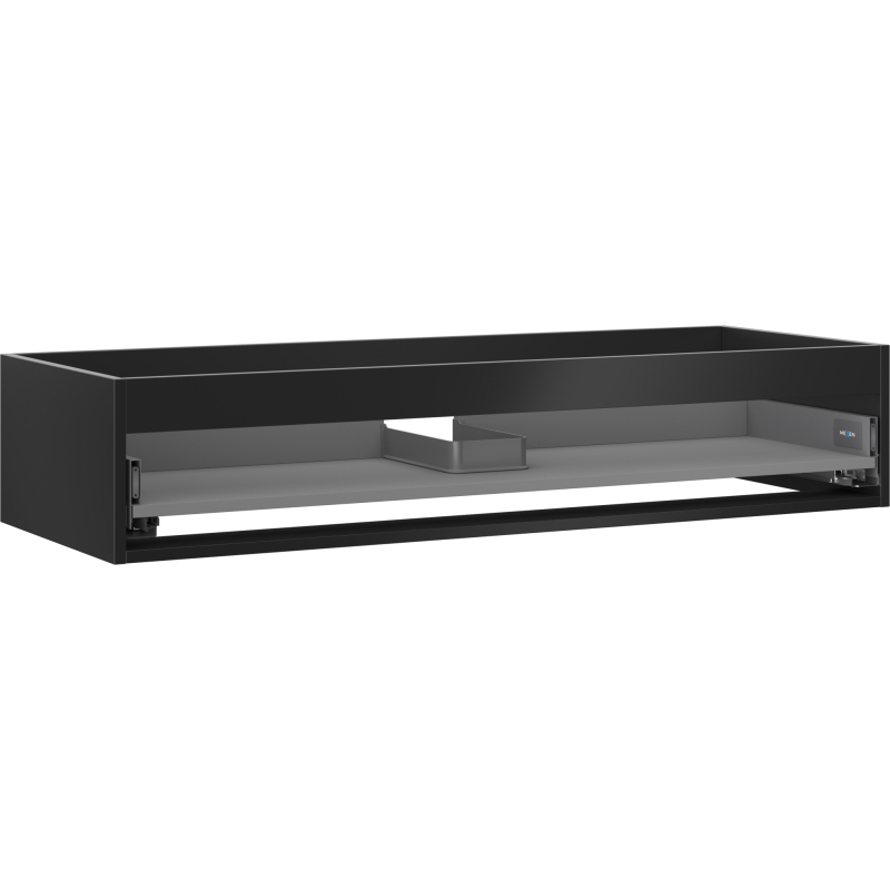 Špecifikácia produktu: Šírka: 120 cm Hĺbka: 44,2 cm Výška: 23,5 cm Farba: Matná čierna Typ: Závesné Materiál: Lakovaná doska Počet zásuviek: 1 Vodítka s funkciou tlmeného dovierania Plný výsuv pre ľahký prístup k obsahu zásuvky Povrch odolný voči UV žiareniu Kombinovateľný