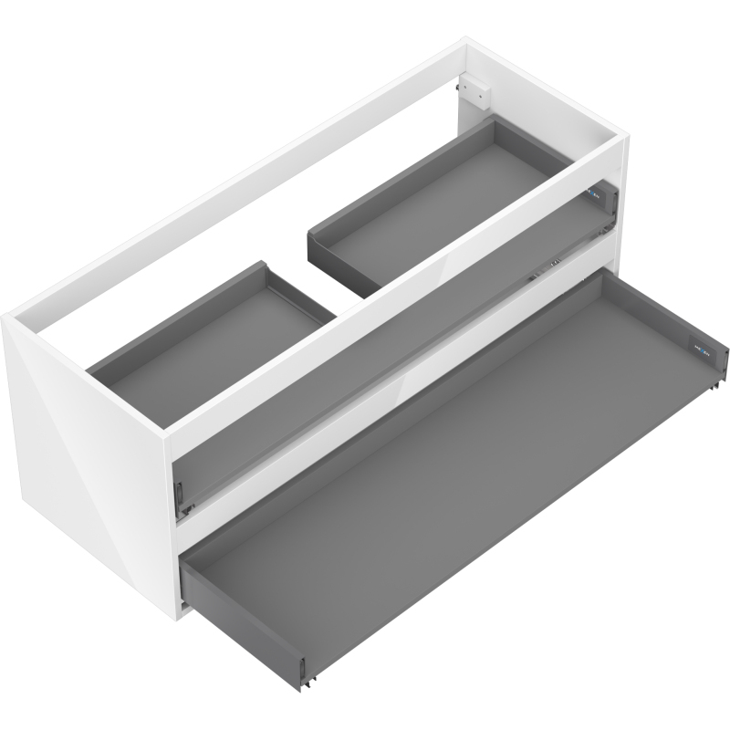 Špecifikácia produktu: Šírka: 120 cm Hĺbka: 44,2 cm Výška: 47 cm Farba: Lesklá biela Typ: Závesné Materiál: Lakovaná doska Počet zásuviek: 2 Vodítka s funkciou tlmeného dovierania Plný výsuv pre ľahký prístup k obsahu zásuvky Povrch odolný voči UV žiareniu Kombinovateľný