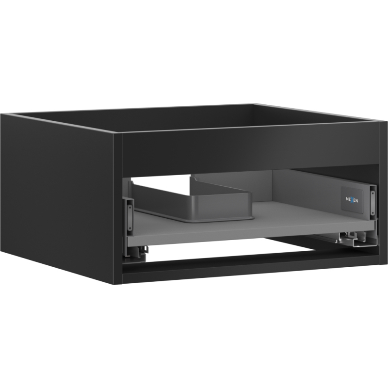 Špecifikácia produktu: Šírka: 50 cm Hĺbka: 44,2 cm Výška: 23,5 cm Farba: Matná čierna Typ: Závesné Materiál: Lakovaná doska Počet zásuviek: 1 Vodítka s funkciou tlmeného dovierania Plný výsuv pre ľahký prístup k obsahu zásuvky Povrch odolný voči UV žiareniu Kombinovateľný s d