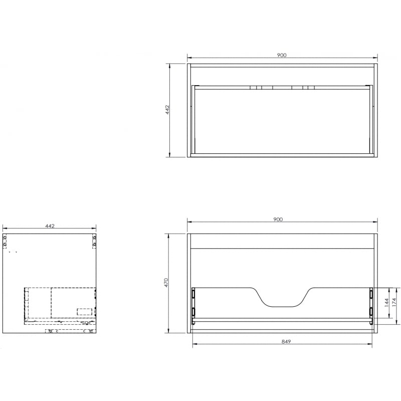 Korpus umývadlovej skrinky Mexen Box-A 90 cm, 1 zásuvka, matne šedá - 91AX0-0900-470-1-62