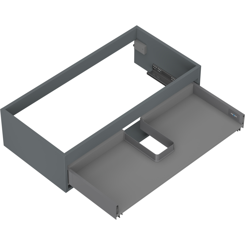 Špecifikácia produktu: Šírka: 90 cm Hĺbka: 44,2 cm Výška: 23,5 cm Farba: Matný grafit Typ: Závesné Materiál: Lakovaná doska Počet zásuviek: 1 Vodítka s funkciou tlmeného dovierania Plný výsuv pre ľahký prístup k obsahu zásuvky Povrch odolný voči UV žiareniu Kombinovateľný