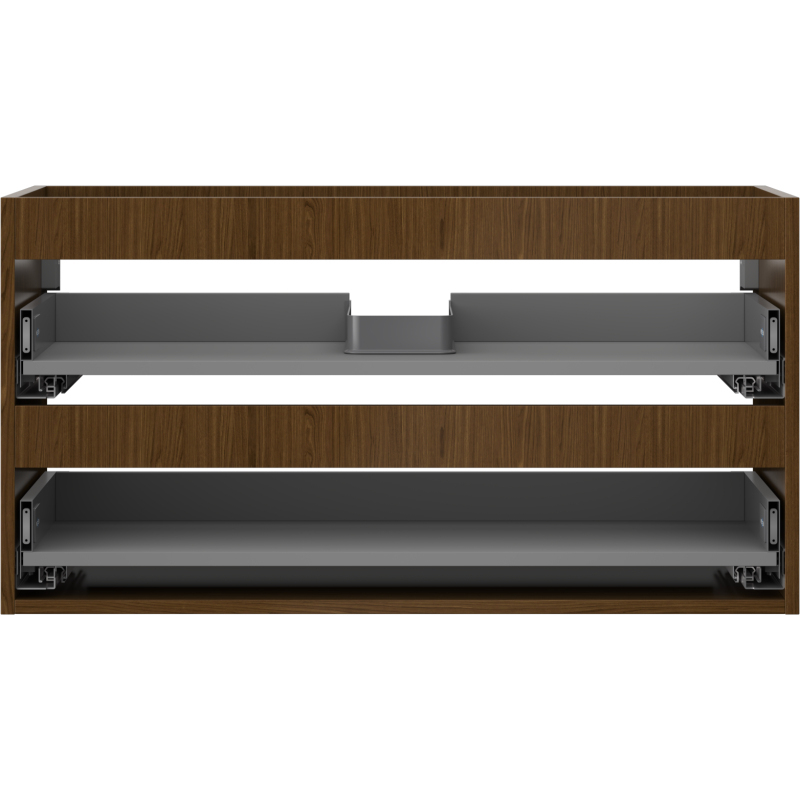 Špecifikácia produktu: Šírka: 90 cm Hĺbka: 44,2 cm Výška: 47 cm Farba: Orech Typ: Závesné Materiál: Kartón + PVC fólia Počet zásuviek: 2 Vodítka s funkciou tlmeného dovierania Plný výsuv pre ľahký prístup k obsahu zásuvky Povrch odolný voči UV žiareniu Kombinovateľný s d