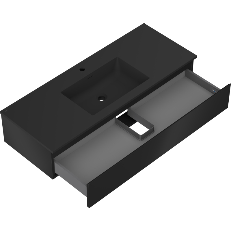 Koupelnová skříňka Mexen Orio 120 cm s umyvadlem Otis, 1 zásuvka, matná černá - 91A10-12023-1-BF71-W18M71