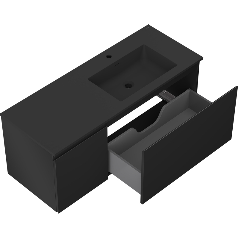 Koupelnová skříňka Mexen Orio 120 cm s umyvadlem Otis pravá, 1S, 1D, matná černá - 91A13-12047-3-BBFF71-W18P71