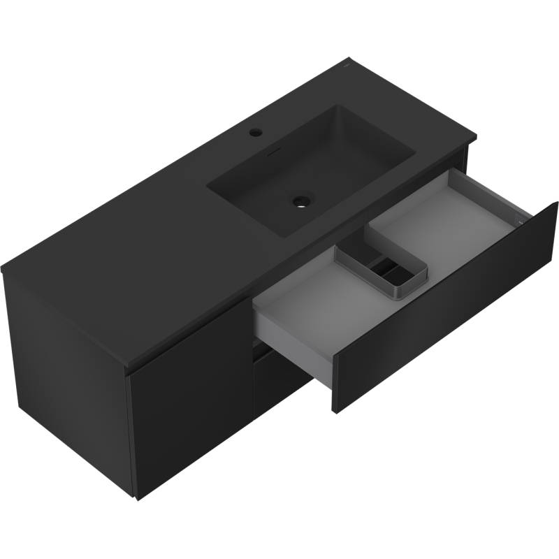 Koupelnová skříňka Mexen Orio 120 cm s umyvadlem Otis pravá, 2S, 1D, matná černá - 91A13-12047-3-BBFFF71-W18P71