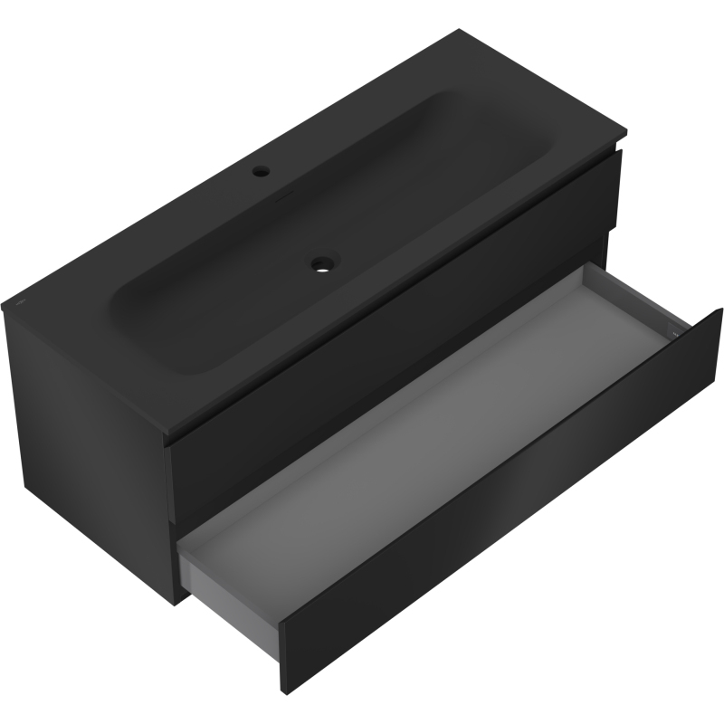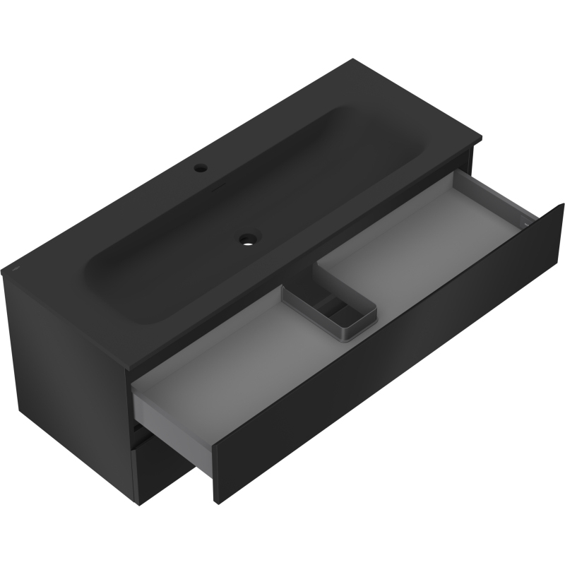 Koupelnová skříňka Mexen Orio 120 cm s umyvadlem Vela, 2 zásuvky, matná černá - 91A10-12047-2-BFF71-W23M71