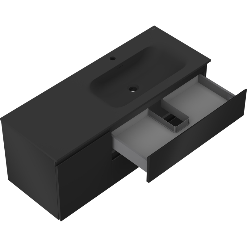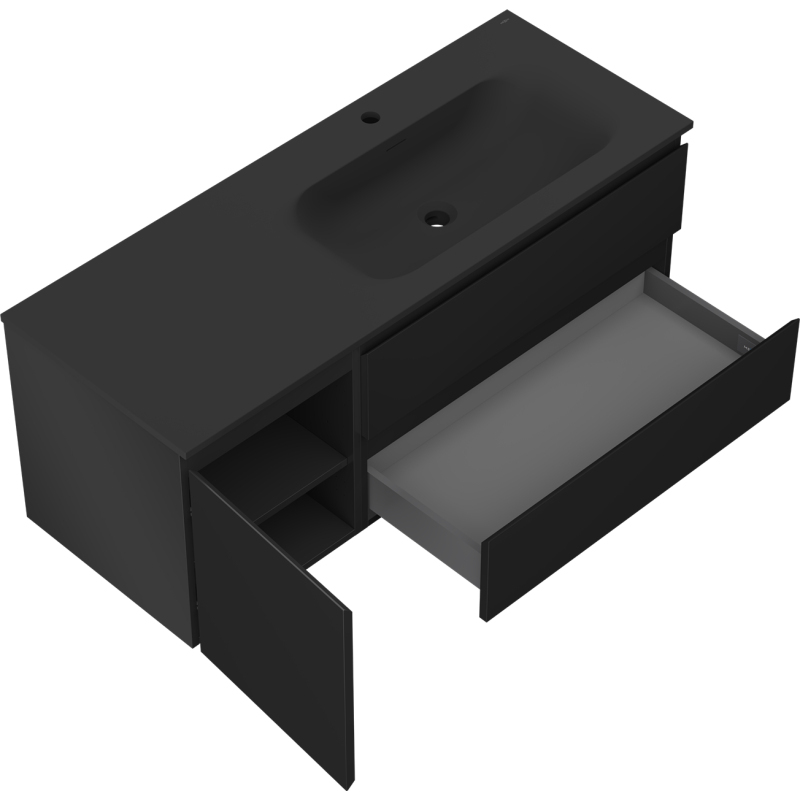 Koupelnová skříňka Mexen Orio 120 cm s umyvadlem Vela pravá, 2S, 1D, matná černá - 91A13-12047-3-BBFFF71-W23P71
