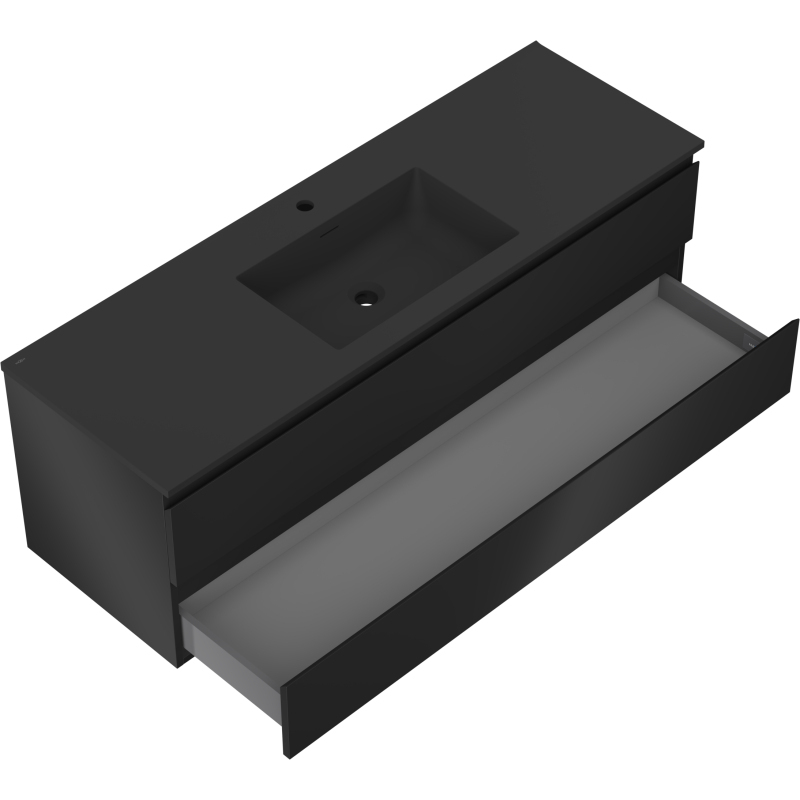 Koupelnová skříňka Mexen Orio 140 cm s umyvadlem Otis, 2 zásuvky, matná černá - 91A10-14047-2-BFF71-W18M71