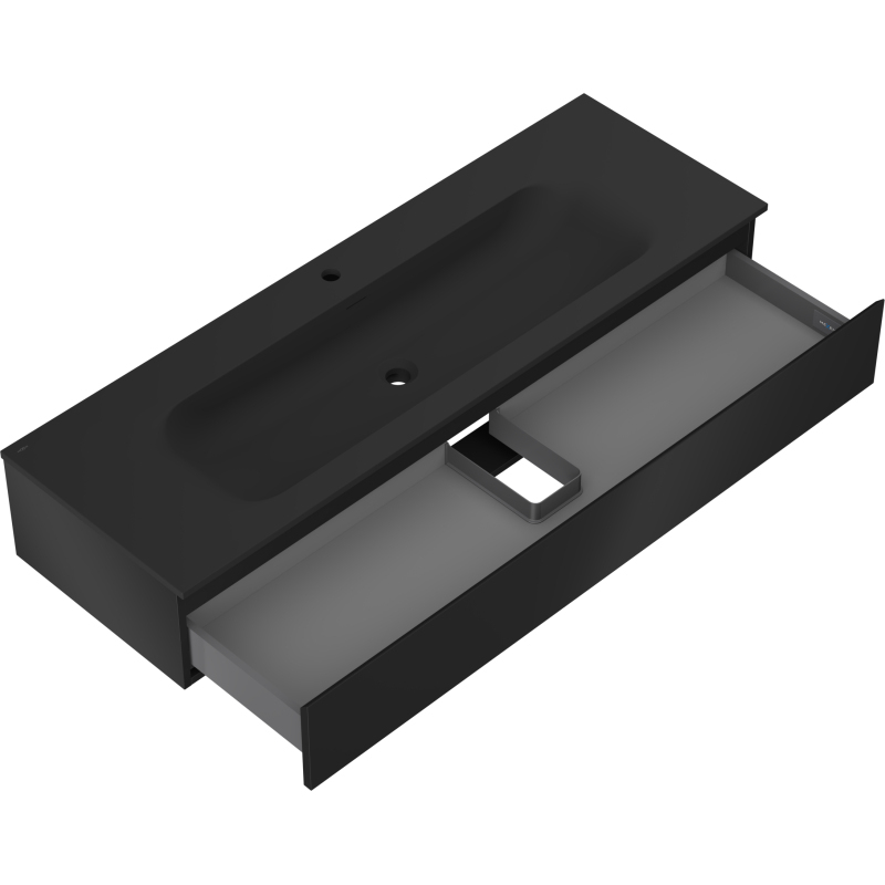 Specifikace produktu: Rozměry skříňky: Šířka: 140 cm Hloubka: 46 cm Výška: 23,5 cm Barva korpusu: Matná černá Materiál korpusu: Lakovaná deska Barva čela: Matná černá Materiál čela: Lakovaná MDF deska Struktura čela: Hladká Počet zásuvek: 1 Prostorná zásuvka s funkcí tichého dovírání Povrch odolný vůči UV záření Rozměry umyvadla: Šířka: 141 cm Hloubka: 46,5 cm Výška: 16,5 cm Barva umyvadla: Matná černá Materiál umyvadla: Konglomerát Otvor pro přepad: Ano Otvor pro baterii: Ano Smontovaný výrobek