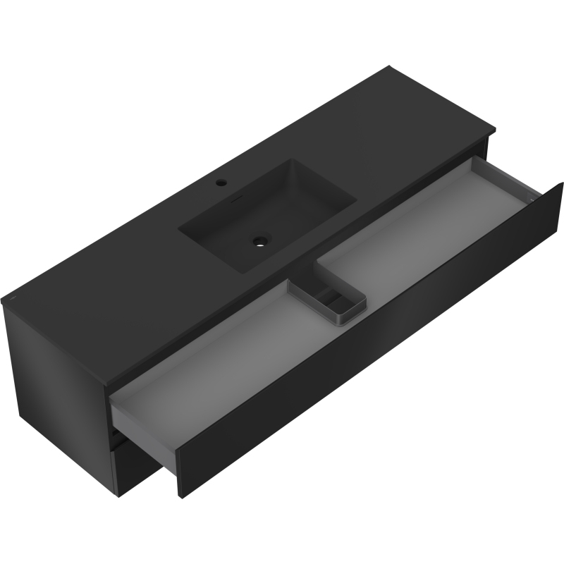 Koupelnová skříňka Mexen Orio 160 cm s umyvadlem Otis, 2 zásuvky, matná černá - 91A10-16047-2-BFF71-W18M71
