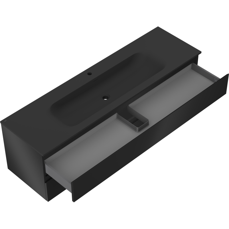 Koupelnová skříňka Mexen Orio 160 cm s umyvadlem Vela, 2 zásuvky, matná černá - 91A10-16047-2-BFF71-W23M71