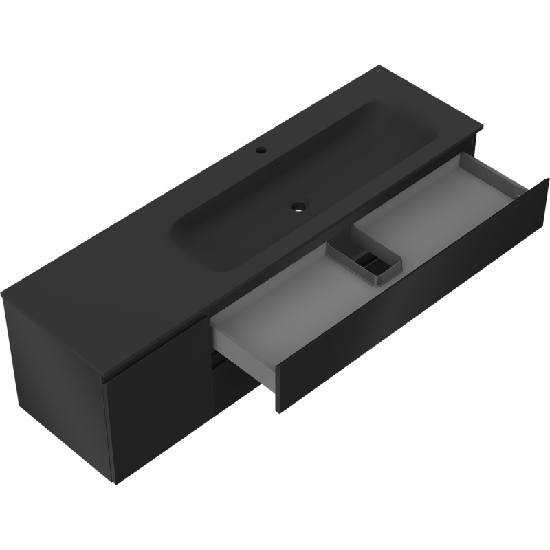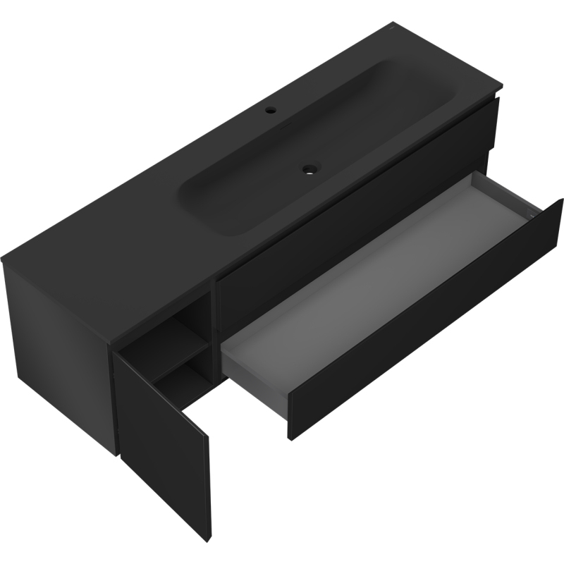 Koupelnová skříňka Mexen Orio 160 cm s umyvadlem Vela pravá, 2S, 1D, matná černá - 91A13-16047-3-BBFFF71-W23P71