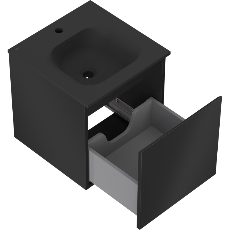 Koupelnová skříňka Mexen Orio 45 cm s umyvadlem Vela, 1 zásuvka, matná černá - 91A10-04547-1-BF71-W23M71