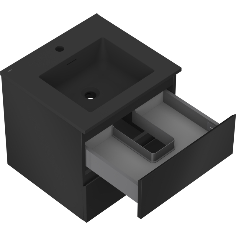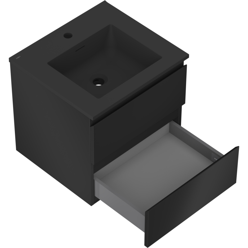Koupelnová skříňka Mexen Orio 50 cm s umyvadlem Otis, 2 zásuvky, matná černá - 91A10-05047-2-BFF71-W18M71
