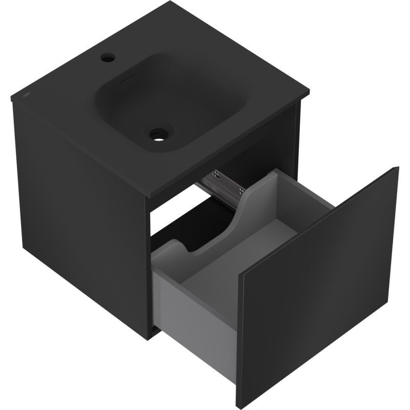Koupelnová skříňka Mexen Orio 50 cm s umyvadlem Vela, 1 zásuvka, matná černá - 91A10-05047-1-BF71-W23M71