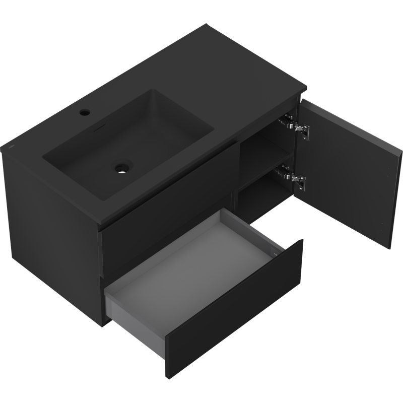 Koupelnová skříňka Mexen Orio 90 cm s umyvadlem Otis vlevo, 2S, 1D, matná černá - 91A13-09047-3-BBFFF71-W18L71