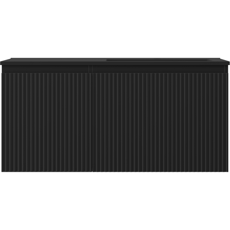 Koupelnová skříňka Mexen Rivel 100 cm s umyvadlem Otis pravé, 1S, 1D, drážkovaná, matná černá - 91A23-10047-3-BBFF71-W18P71