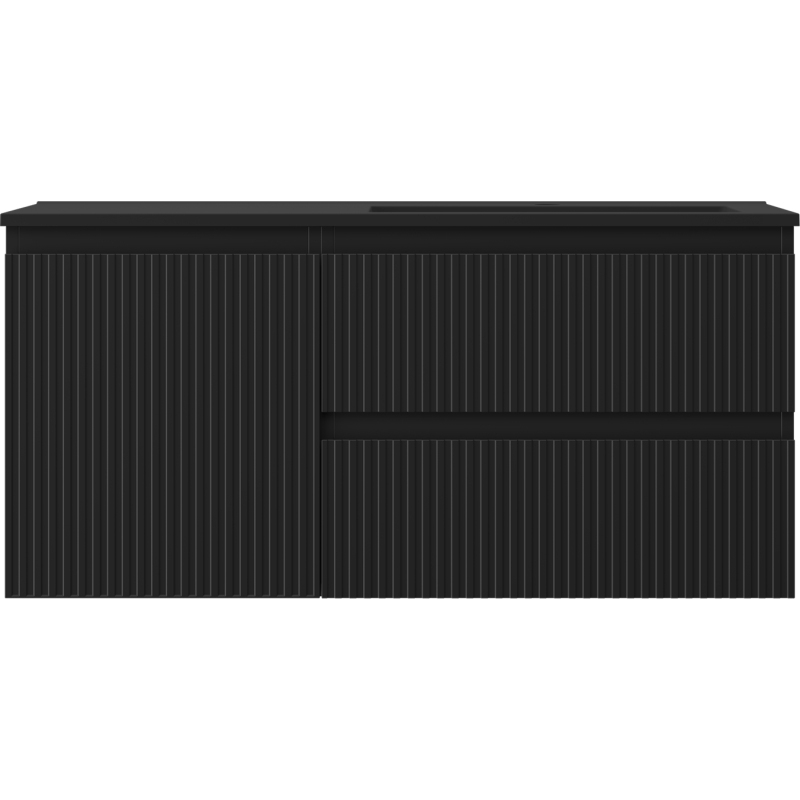 Koupelnová skříňka Mexen Rivel 100 cm s umyvadlem Otis pravé, 2S, 1D, drážkovaná, matná černá - 91A23-10047-3-BBFFF71-W18P71