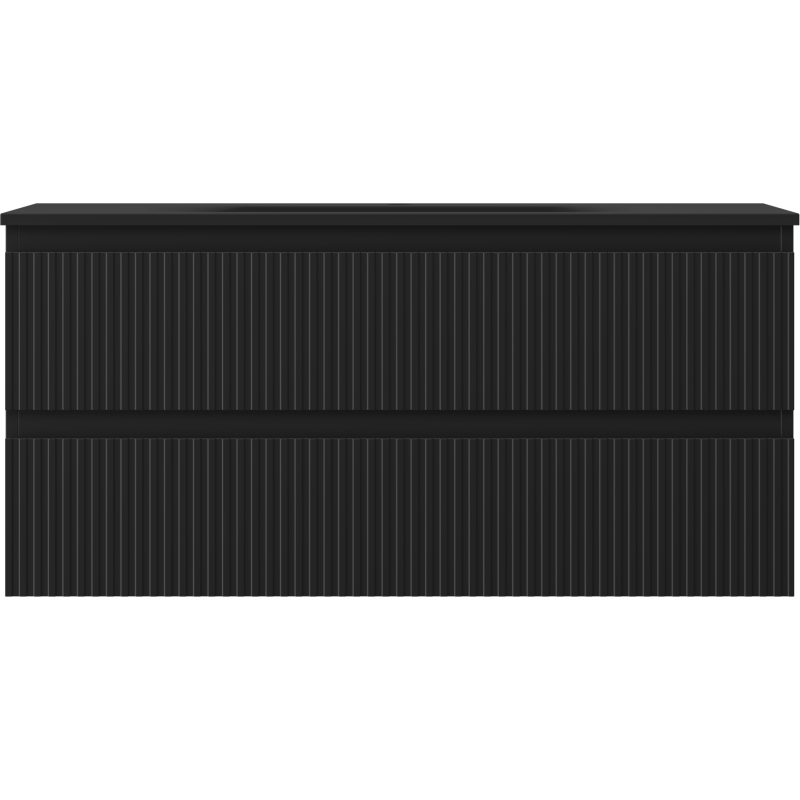 Koupelnová skříňka Mexen Rivel 100 cm s umyvadlem Vela, 2 zásuvky, drážkovaná, matná černá - 91A20-10047-2-BFF71-W23M71