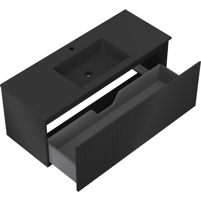 Koupelnová skříňka Mexen Rivel 120 cm s umyvadlem Otis, 1 zásuvka, drážkovaná, matná černá - 91A20-12047-1-BF71-W18M71