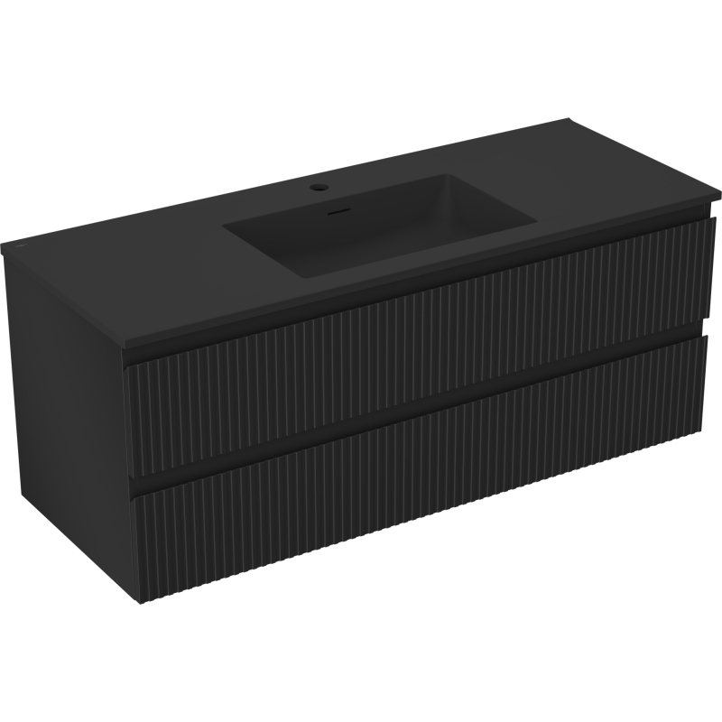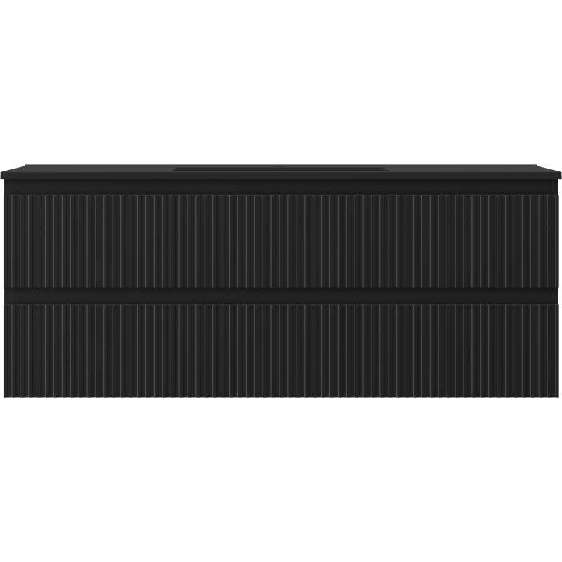 Koupelnová skříňka Mexen Rivel 120 cm s umyvadlem Otis, 2 zásuvky, drážkovaná, matná černá - 91A20-12047-2-BFF71-W18M71