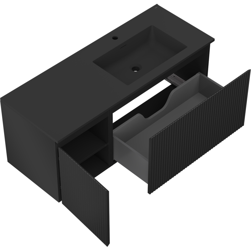 Koupelnová skříňka Mexen Rivel 120 cm s umyvadlem Otis pravým, 1S, 1D, drážkovaná, matná černá - 91A23-12047-3-BBFF71-W18P71