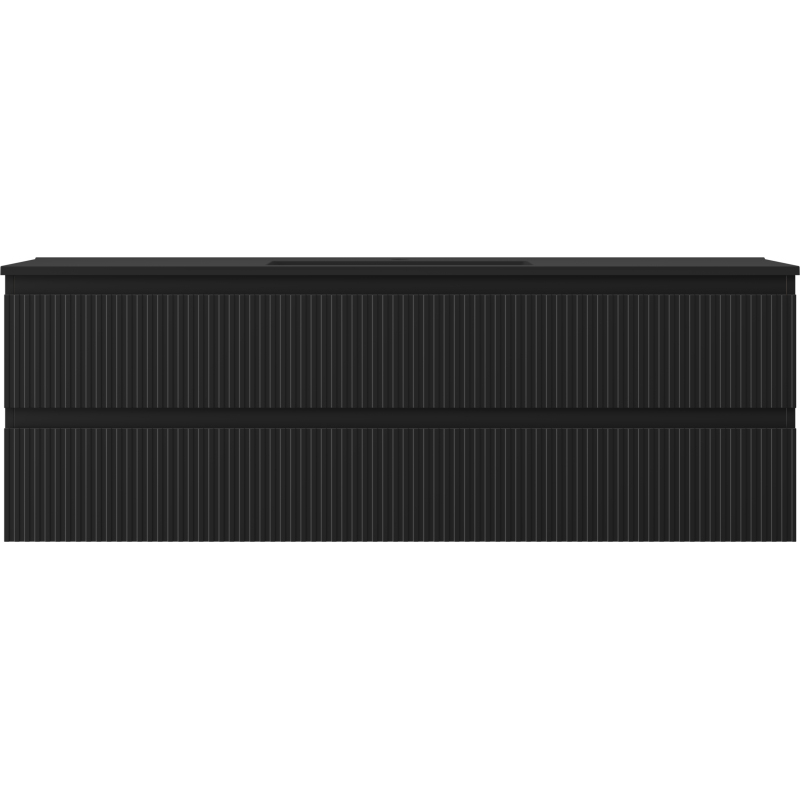 Koupelnová skříňka Mexen Rivel 140 cm s umyvadlem Otis, 2 zásuvky, drážkovaná, matná černá - 91A20-14047-2-BFF71-W18M71