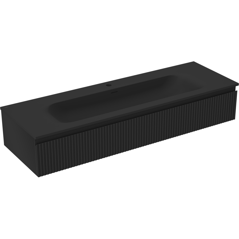 Koupelnová skříňka Mexen Rivel 140 cm s umyvadlem Vela, 1 zásuvka, drážkovaná, matná černá - 91A20-14023-1-BF71-W23M71