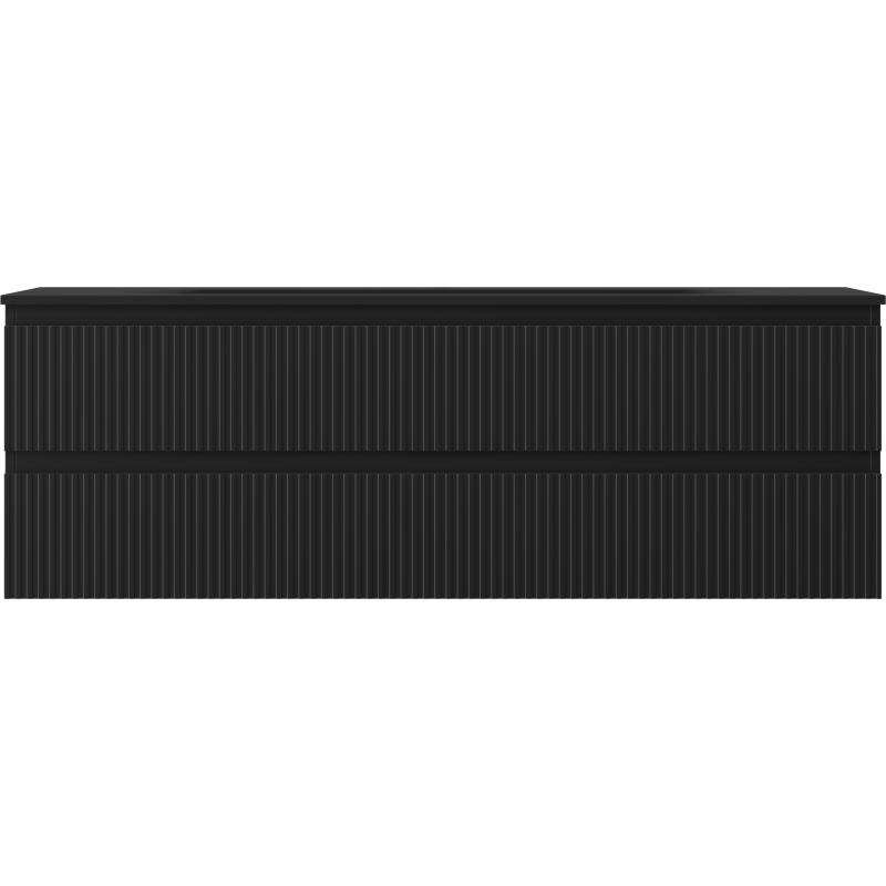 Koupelnová skříňka Mexen Rivel 140 cm s umyvadlem Vela, 2 zásuvky, drážkovaná, matná černá - 91A20-14047-2-BFF71-W23M71