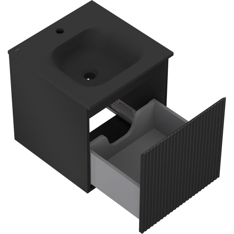 Koupelnová skříňka Mexen Rivel 45 cm s umyvadlem Vela, 1 zásuvka, drážkovaná, matná černá - 91A20-04547-1-BF71-W23M71