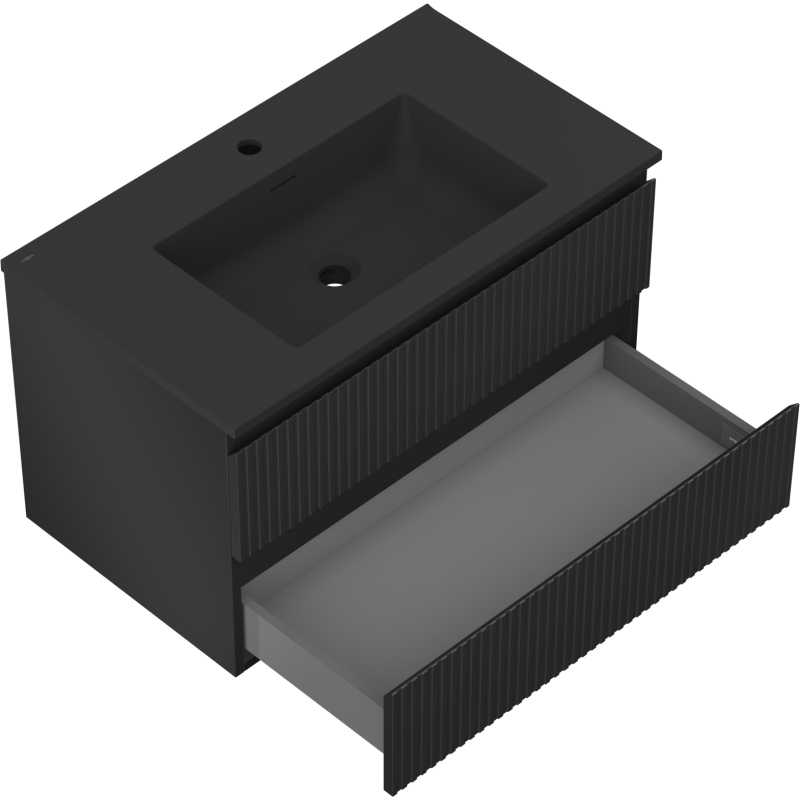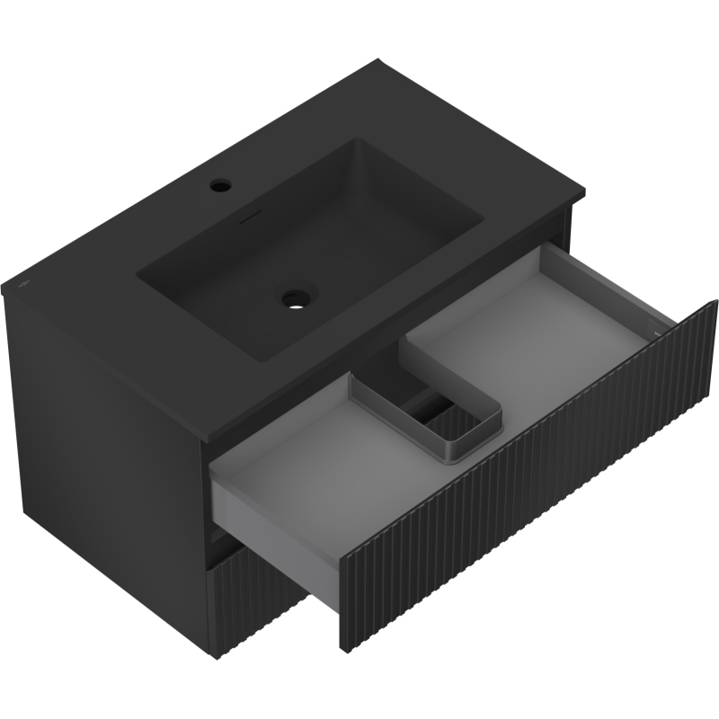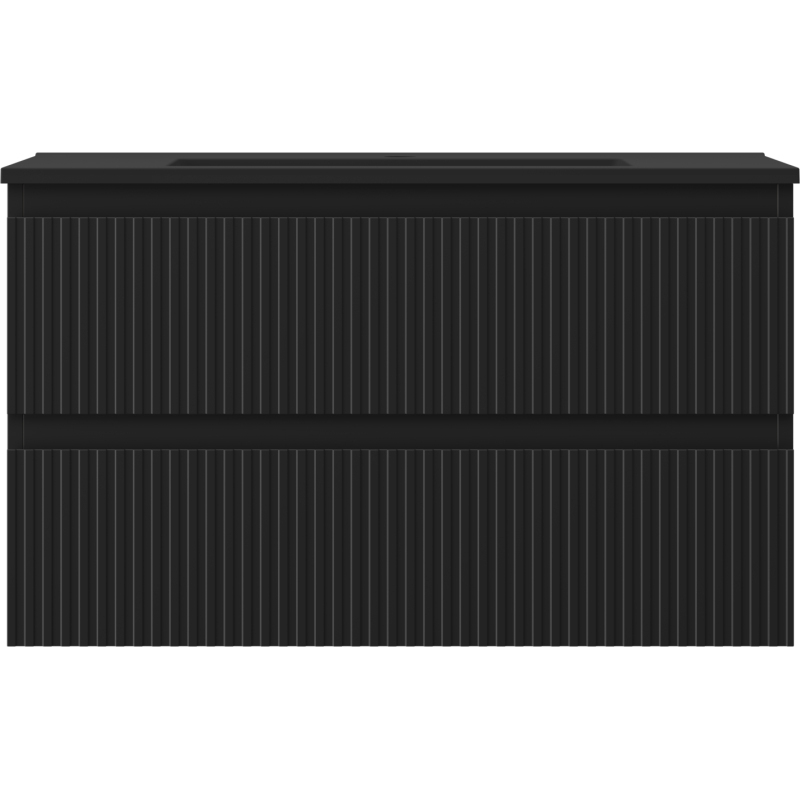 Koupelnová skříňka Mexen Rivel 80 cm s umyvadlem Otis, 2 zásuvky, drážkovaná, matná černá - 91A20-08047-2-BFF71-W18M71