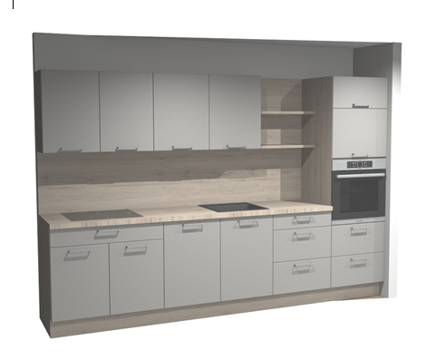 Čelná plocha 431 Kamenná šedá super matná, korpus 078 Dub San Remo imitácia, Pracovná doska San Remo imitácia, chrbtová doska Dub San Remo imitácia, úchyt č.