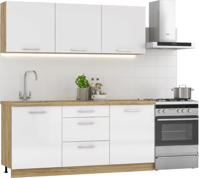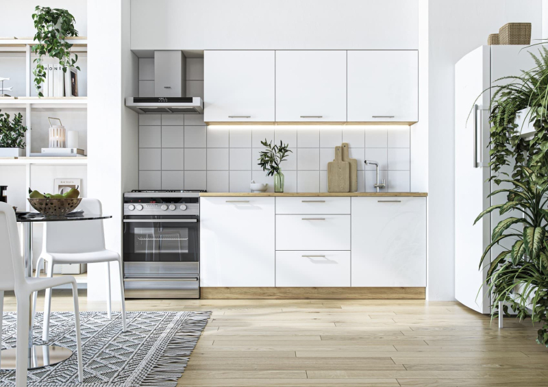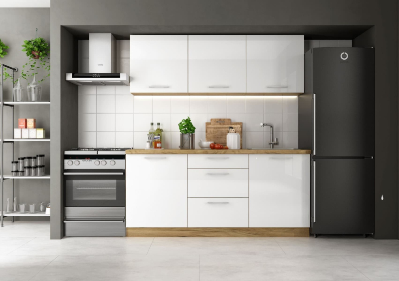 Kompletná kuchynská linka vrátane procovnej dosky. Bez spotrebičov, drezu, batérie.