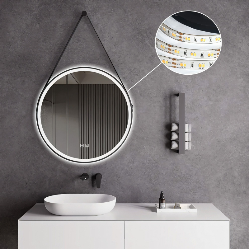 REA Kulaté LED zrcadlo zavěšené na pásku 70 cm 104 HOM-02697 HOM-02697