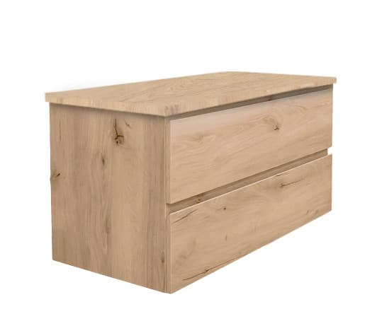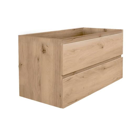Závesná kúpeľňová skrinka s umývadlom z liateho mramoru v dekore dub s matným povrchom. Povrch v prevedení lamino.