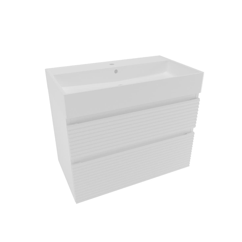 Závesná kúpeľňová skrinka s keramickým umývadlom v bielej farbe v lesklom prevedení s rozmerom 78x53x44,8 cm. Povrch v prevedení lamino.