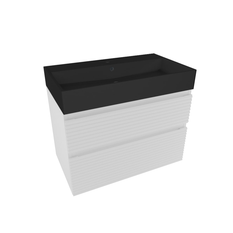 Závesná kúpeľňová skrinka s keramickým umývadlom v bielej farbe v lesklom prevedení o rozmere 78x53x44,8 cm. Povrch v prevedení lamino.