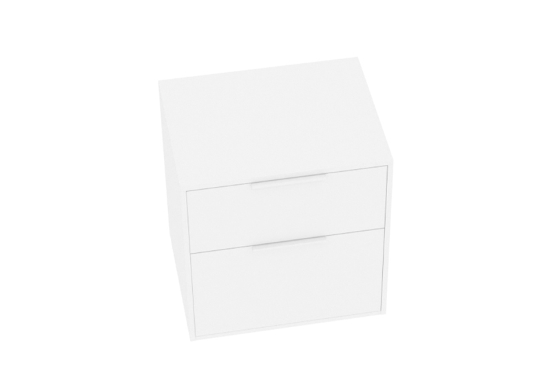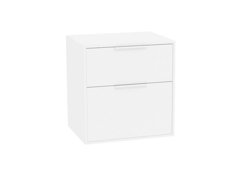 Závesná kúpeľňová skrinka bez umývadla vo farebnom prevedení biela matná s matným povrchom o rozmere 58,5x56,5x45,5 cm. Povrch v prevedení lamino. S plnovýsuvom a doťahom.