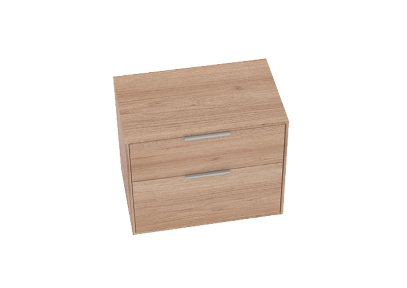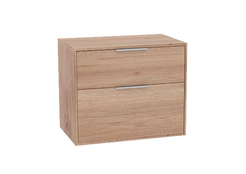 Závesná kúpeľňová skrinka bez umývadla v dekore dub s rozmerom 78,5x56,5x45,5 cm. Povrch v prevedení lamino. S plnovýsuvom a doťahom.