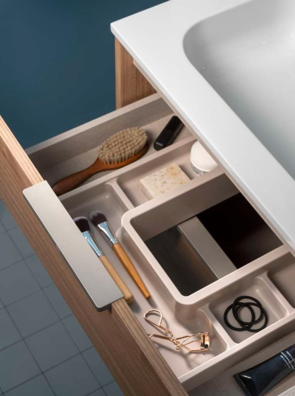 Závesná kúpeľňová skrinka bez umývadla v dekore dub s rozmerom 78,5x75,7x45,5 cm. Povrch v prevedení lamino. S plnovýsuvom a doťahom.