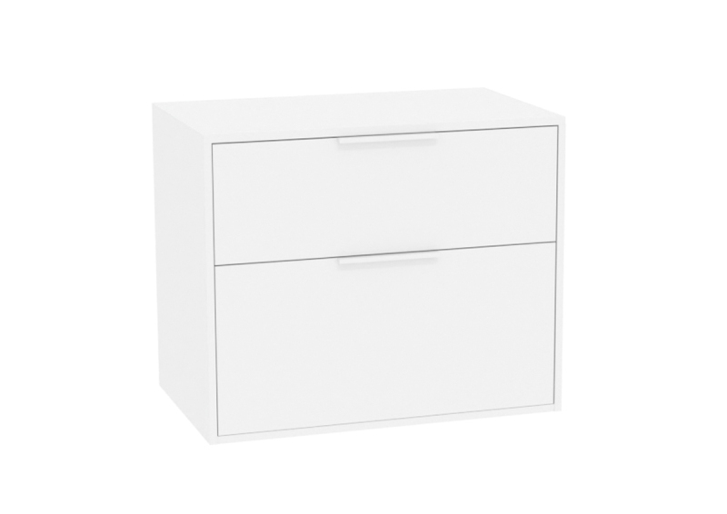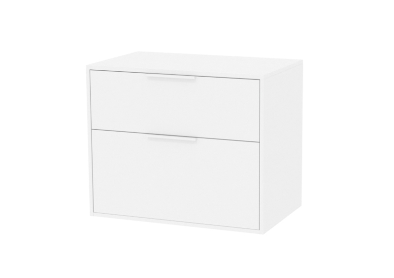 Závesná kúpeľňová skrinka bez umývadla vo farebnom prevedení biela matná s matným povrchom o rozmere 78,5x56,5x45,5 cm. Povrch v prevedení lamino. S plnovýsuvom a doťahom.